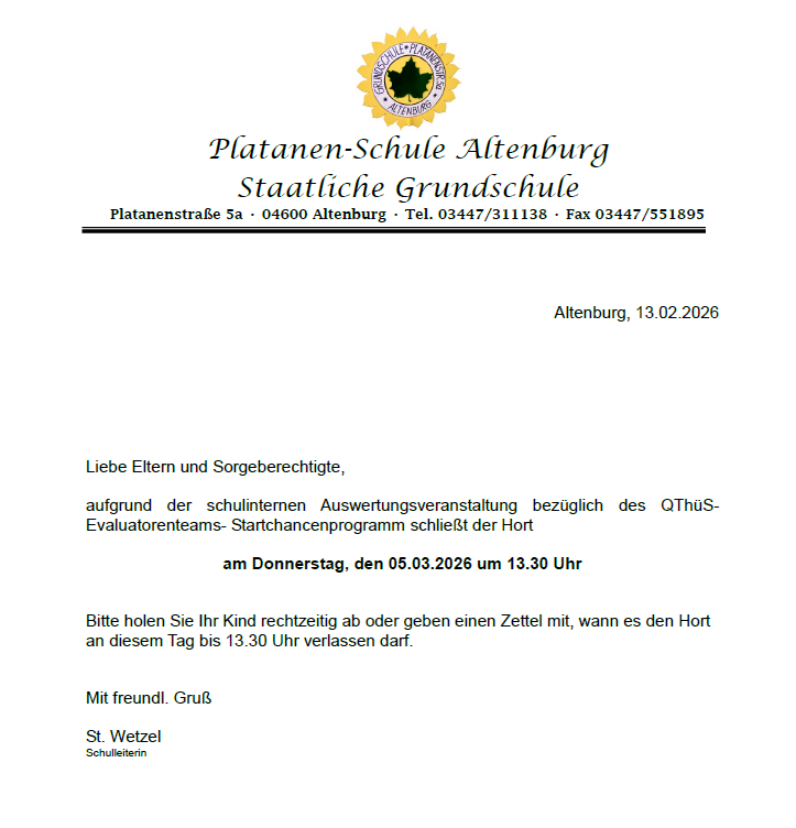 | E-Mail: gs-platanenstrasse@schule-altenburg.de | E-Mail: hort@platane-abg.de |